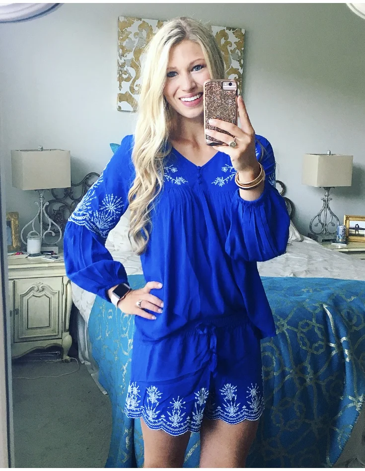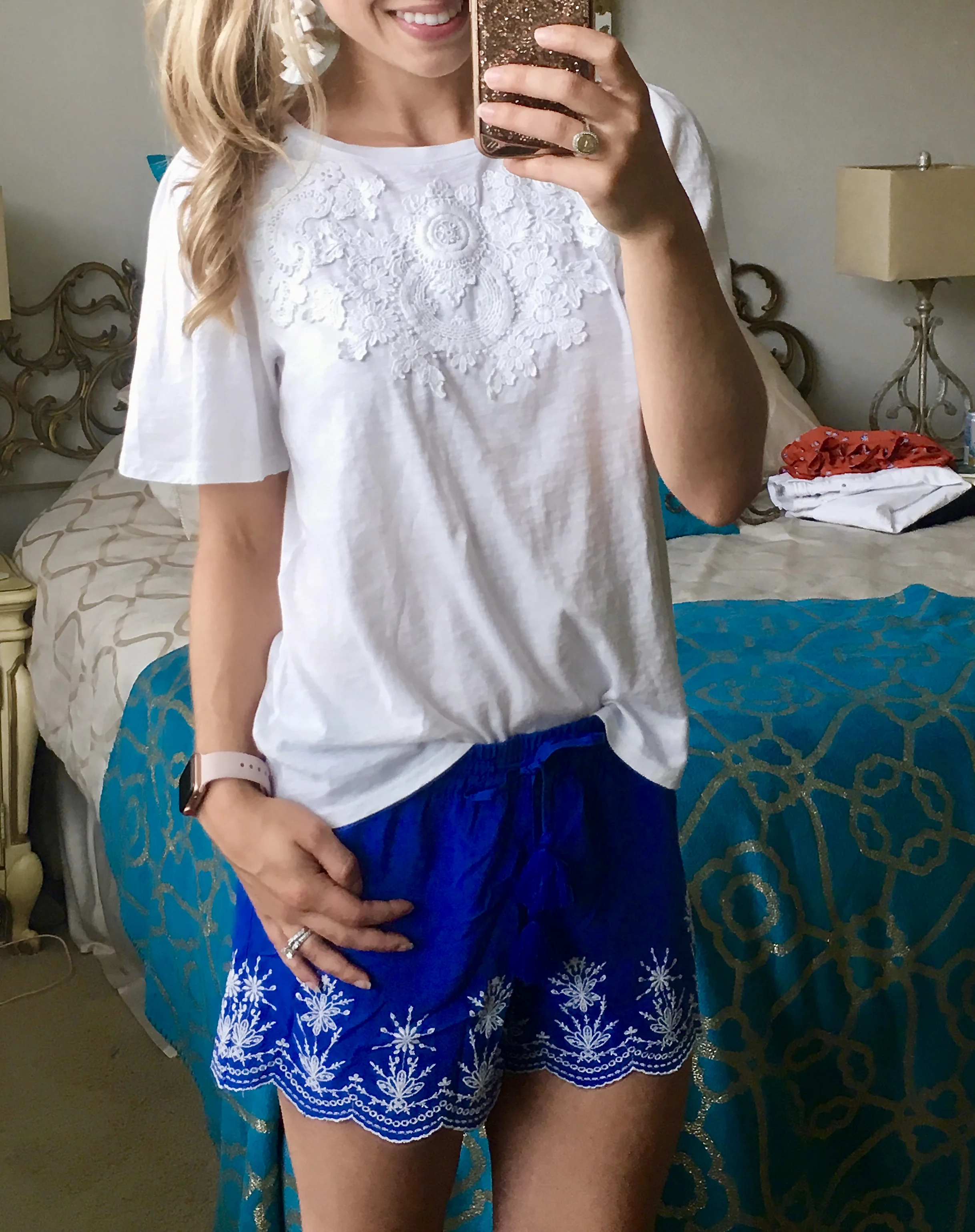 Check of more embroidered and scalloped tops and shorts under $100 below!